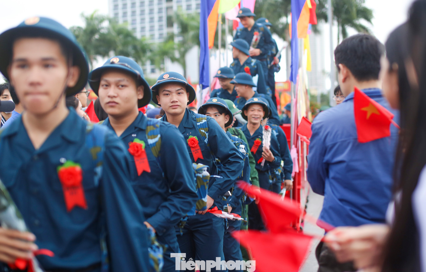 | Thanh niên hăng hái lên đường nhập ngũ. Ảnh: Trương Định |