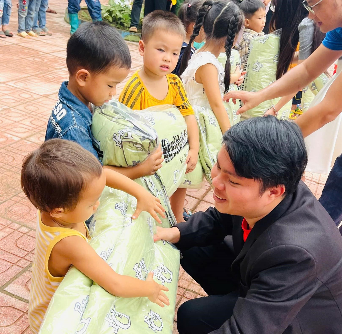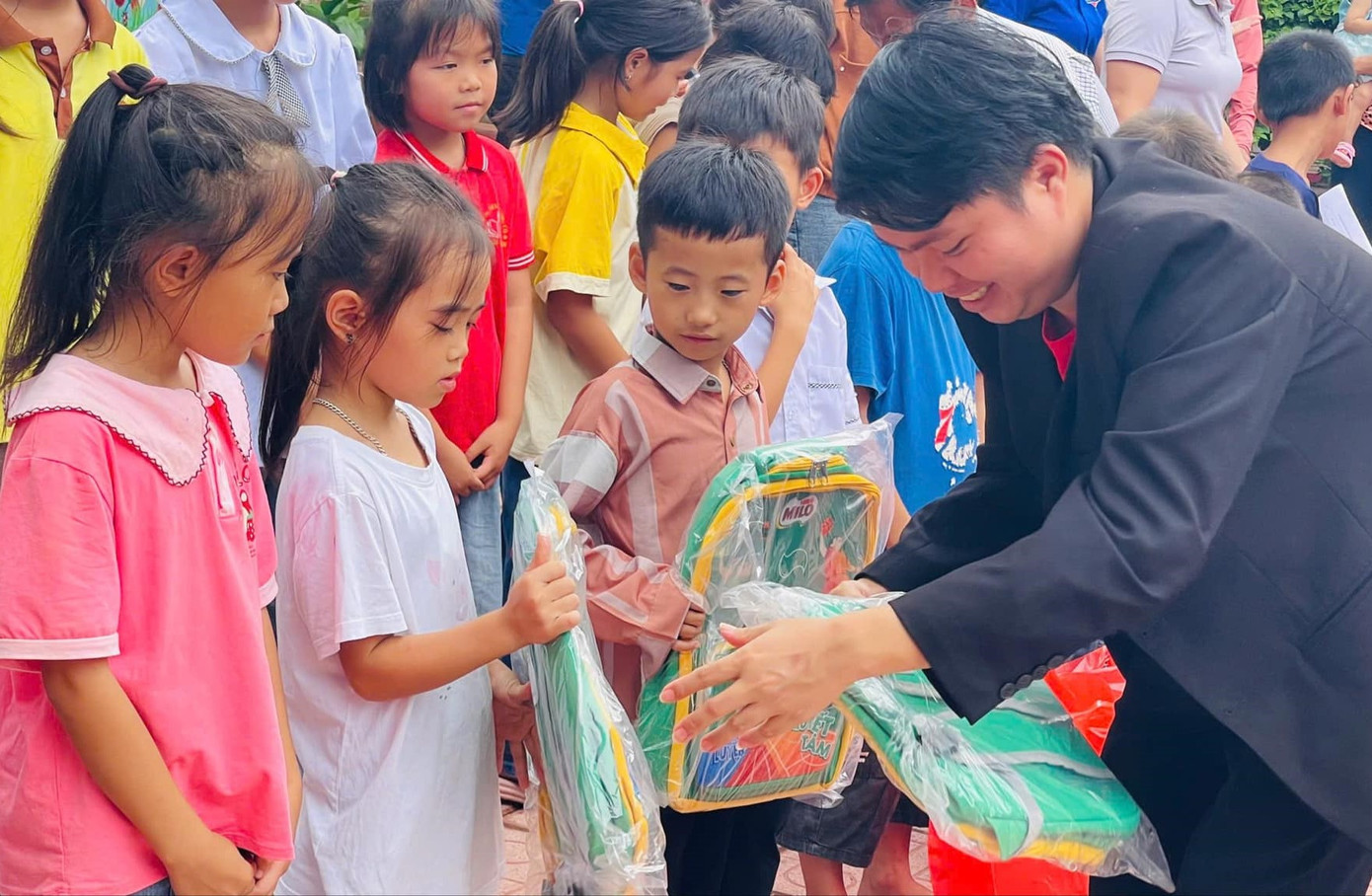 | Đoàn viên, thanh niên tặng quà cho các em thiếu nhi |