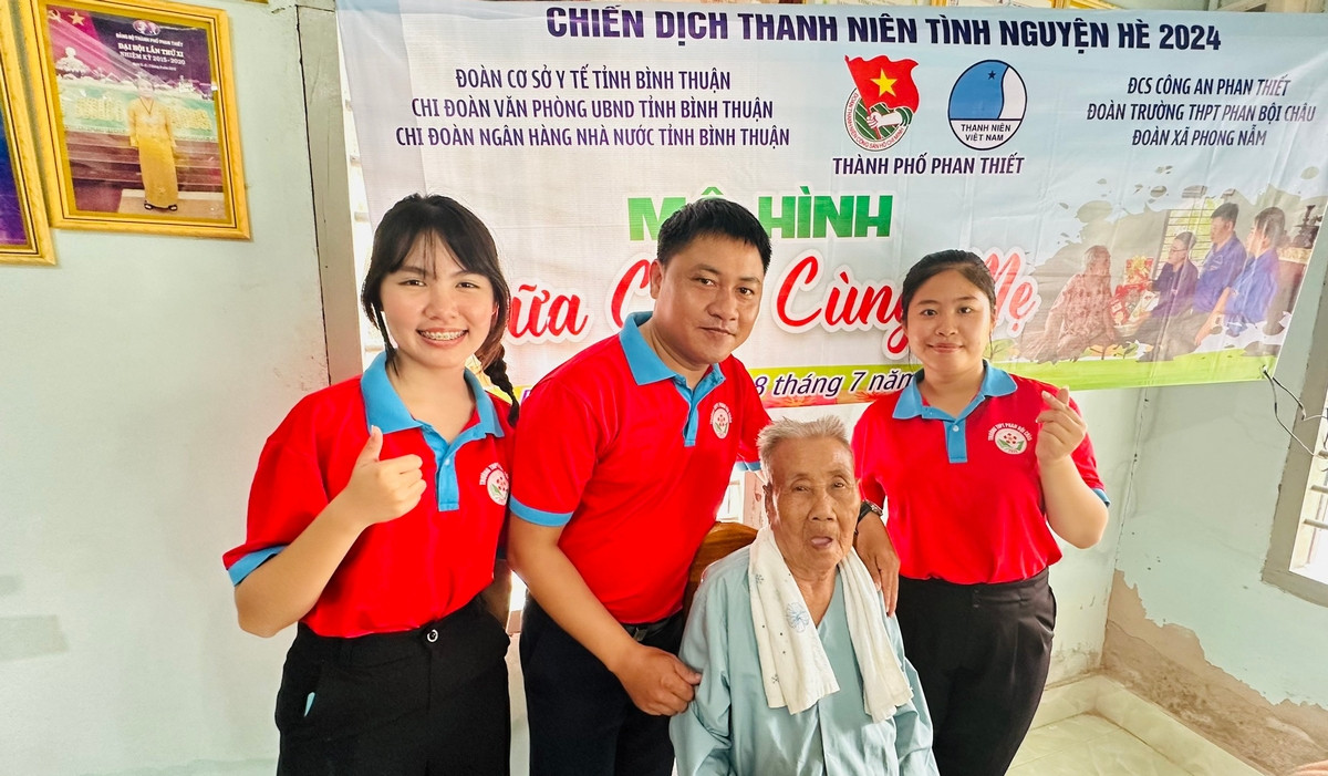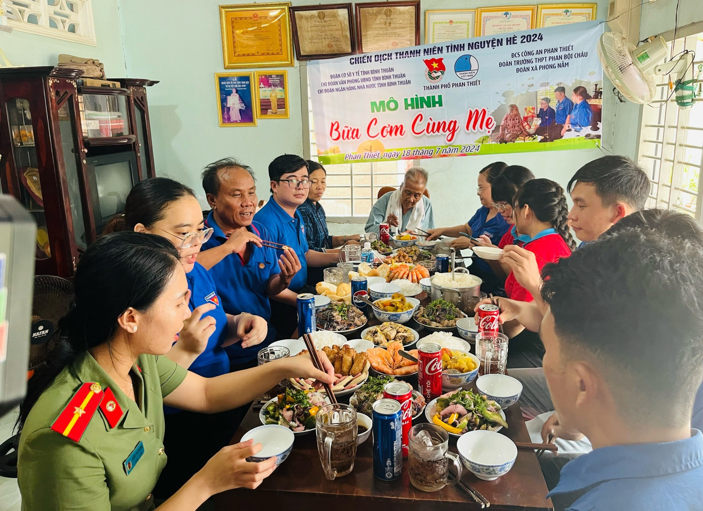 Ngôi nhà của Mẹ Việt Nam anh hùng Lương Thị Con tại xã Phong Nẫm, TP Phan Thiết, tỉnh Bình Thuận rộn ràng hơn hẳn bởi tiếng cười nói của các đồng chí cán bộ Đoàn, đoàn viên, thanh niên, cán chiến sĩ Hoa Phượng đỏ và các đồng chí đoàn viên Công an của TP Phan Thiết. Khác với những lần đến thăm trước, lần này, các bạn trẻ tổ chức nấu và ăn bữa cơm ấm áp cùng Mẹ.