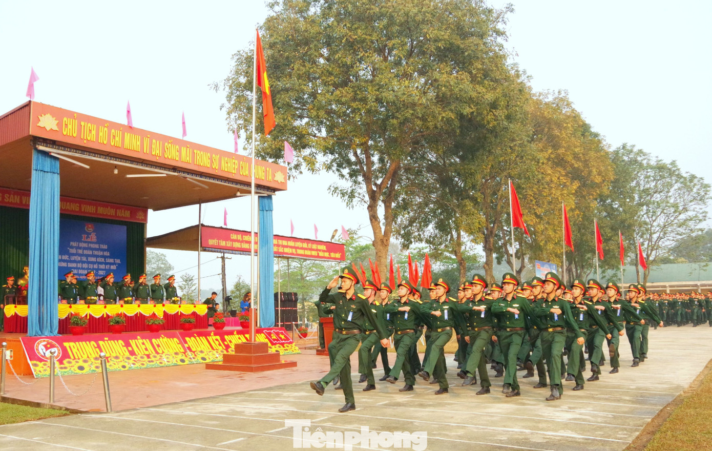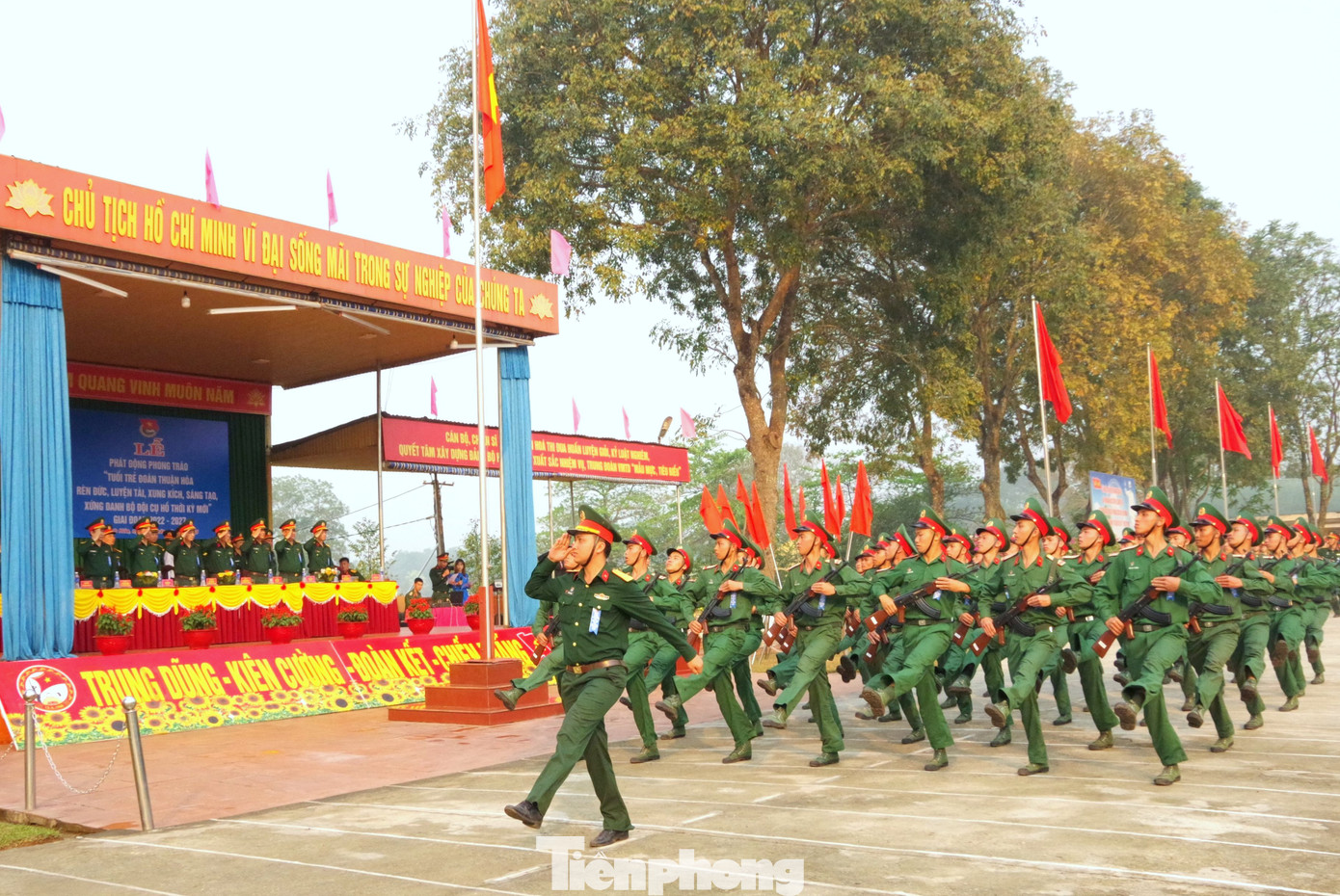| Các khối quân nhân của Trung đoàn 3 duyệt đội ngũ tại lễ phát động. |