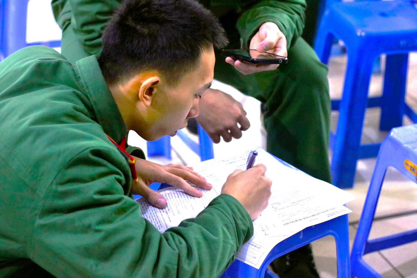 | Không quản trời rét buốt, từ 6h30 sáng, nhiều học viên của Học viện KTQS đã đến xếp hàng chờ đăng ký tham gia hiến máu, hưởng ứng chương trình Chủ Nhật Đỏ. |