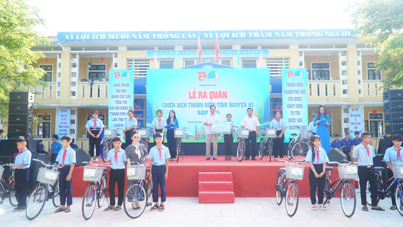 Trong khuôn khổ lễ ra quân, Thành Đoàn triển khai chương trình “Hành trình xe đạp - Nâng bước em đến trường” chặng thứ 33, trao tặng 30 xe đạp cho học sinh có hoàn cảnh khó khăn của Trường THCS Phú Hồ và THCS Phú Lương (huyện Phú Vang). Ngoài ra, ban tổ chức còn trao 14 suất học bổng (500.000 đồng/suất) cho học sinh Trường Tiểu học Phú Lương 1 có thành tích học tập tốt.