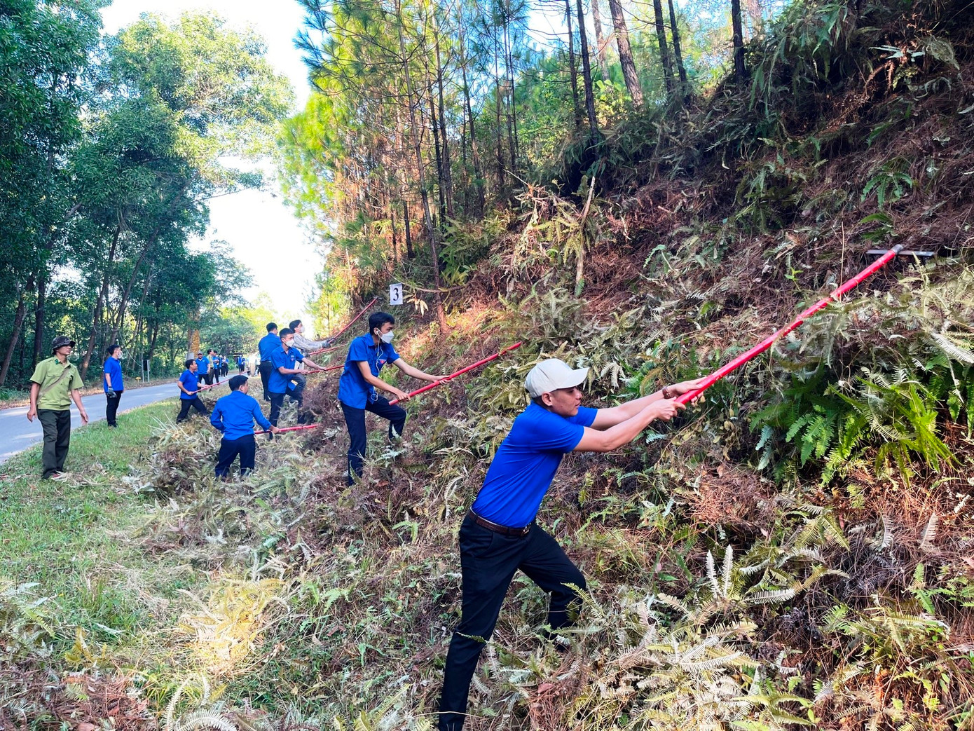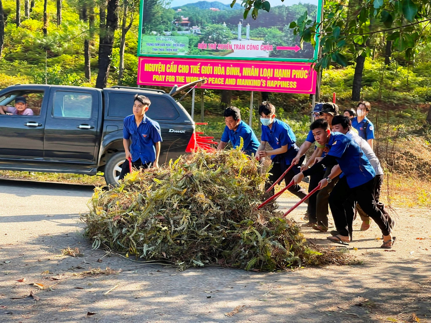 Ngay sau lễ phát động, hơn 250 người là cán bộ, đoàn viên, thanh niên TP Huế đã thực hiện phát quang và thu gom thực bì, lá cây khô là tác nhân dễ cháy ra khỏi rừng thông phía trước Trung tâm Văn hóa Huyền Trân, nhằm góp phần giảm thiểu nguy cơ cháy ở khu vực này.