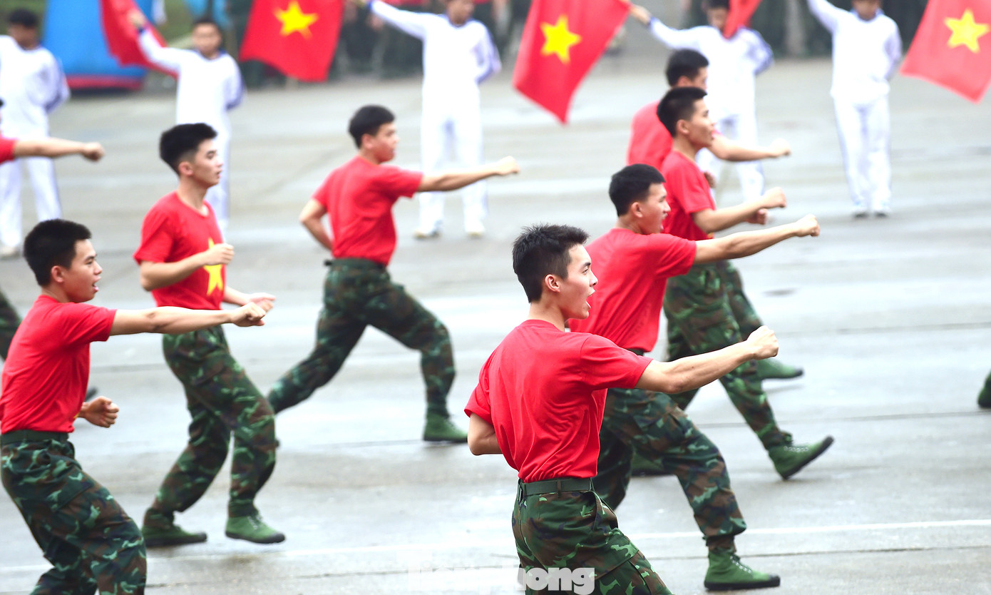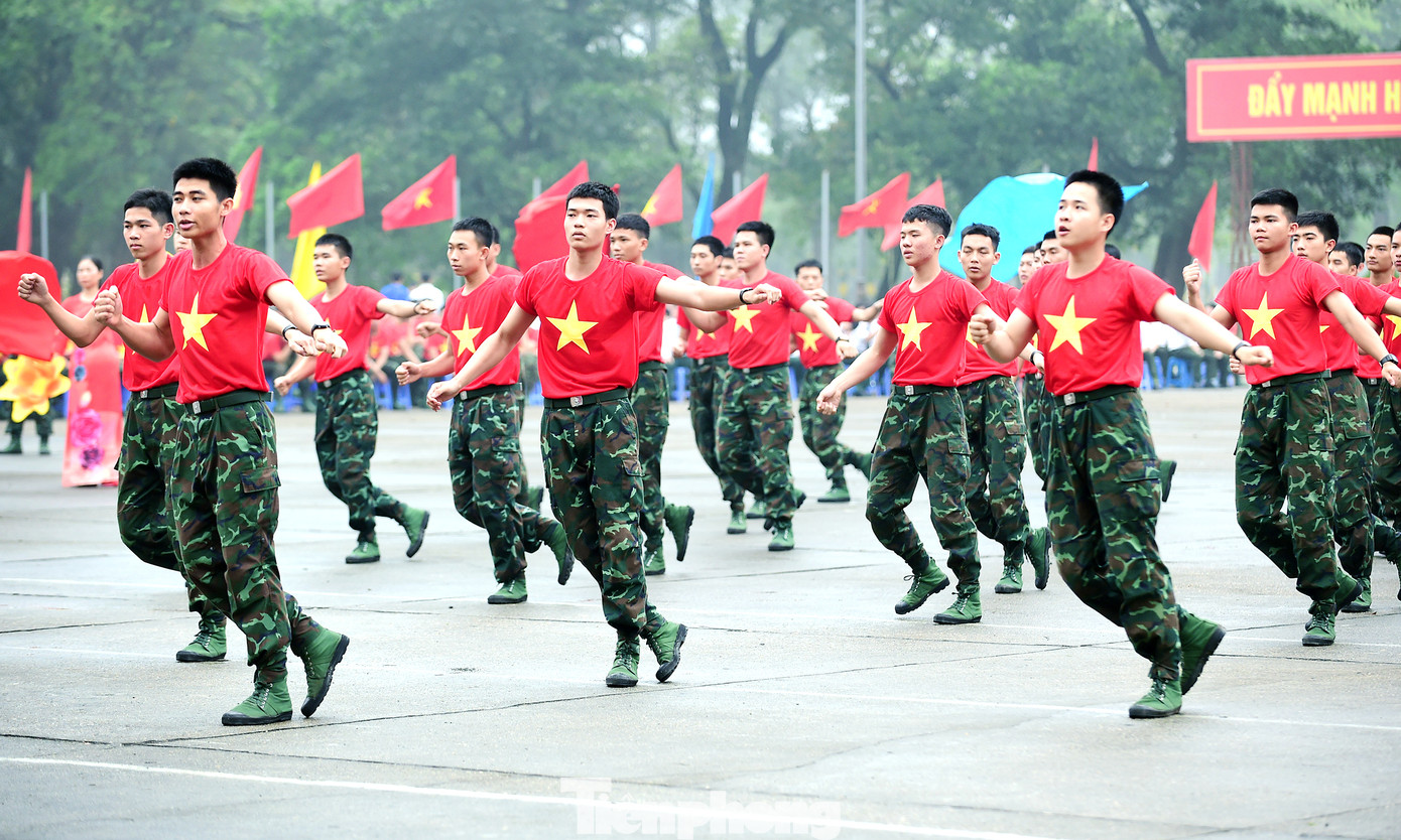 Bên cạnh màu xanh áo lính, các đội đã lựa chọn đồng phục là áo cờ đỏ sao vàng, áo xanh Đoàn thanh niên... tạo thêm điểm nhấn cho các tiết mục múa hát tập thể, dân vũ.