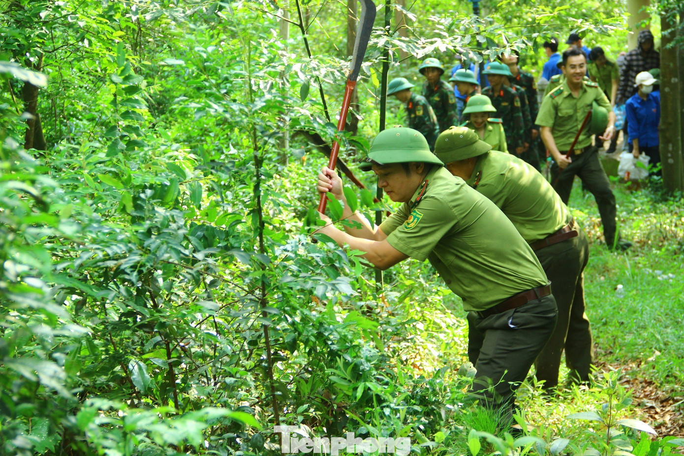 | Sau lễ phát động, hàng trăm đoàn viên, thanh niên, cán bộ, chiến sĩ lực lượng vũ trang trên địa bàn huyện Nam Đàn đã thực hiện phát quang đường băng cản lửa và thu gom thực bì, vật liệu dễ cháy ra khỏi khu vực rừng thông ở khu mộ vua Mai Hắc Đế, núi Đụn, thị trấn Nam Đàn. |