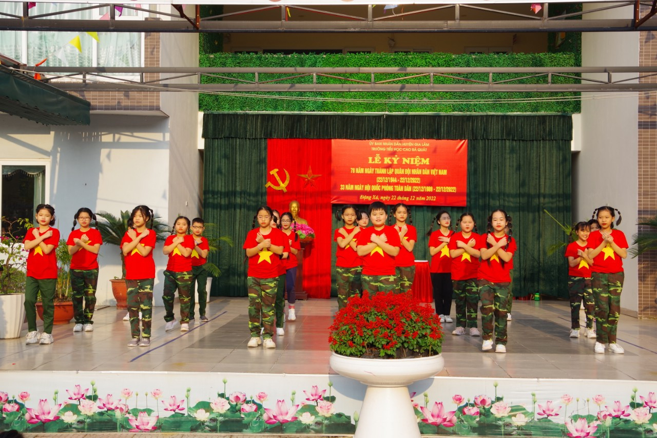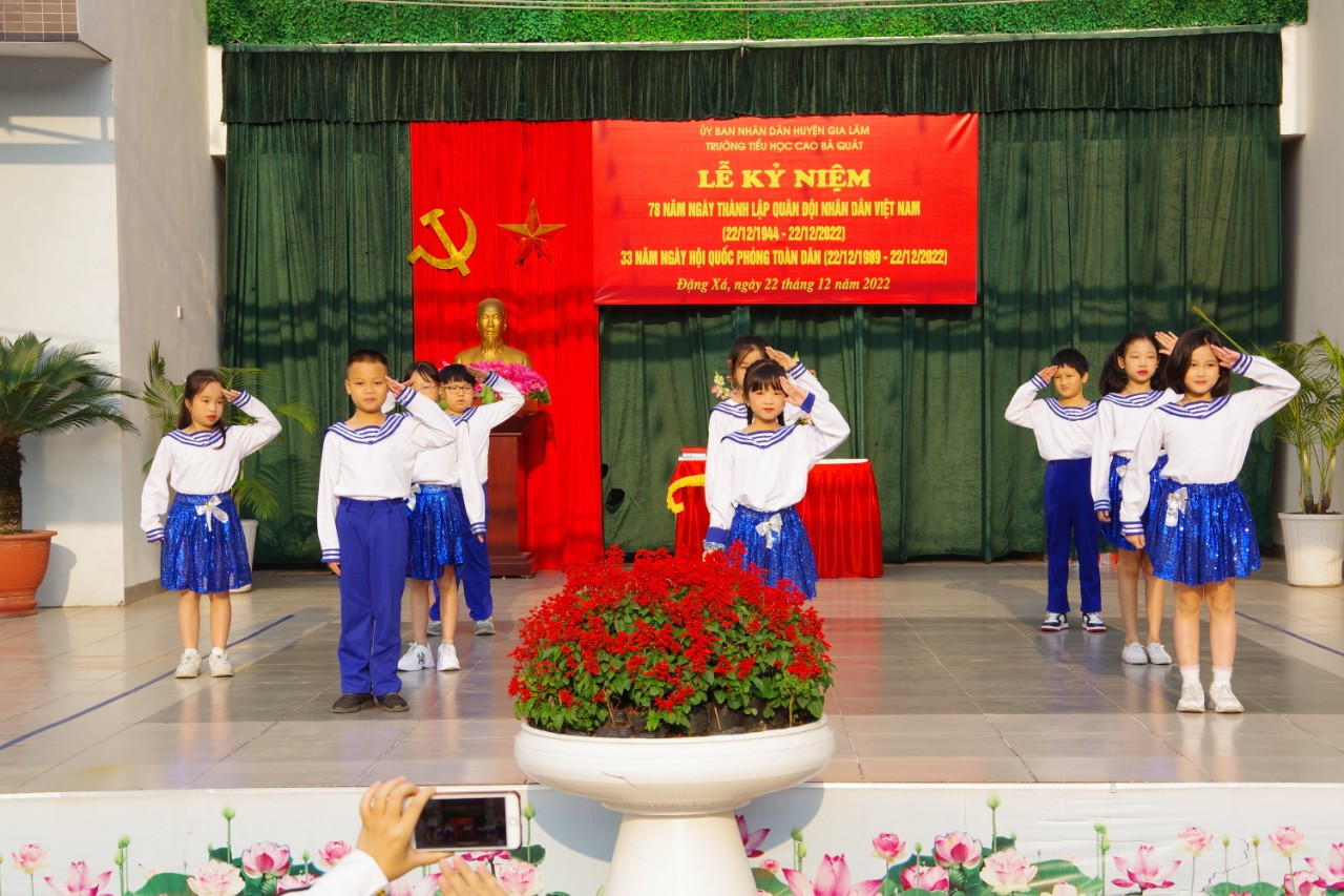 | Học sinh Trường tiểu học Cao Bá Quát biểu diễn văn nghệ chào mừng ngày 22/12 |