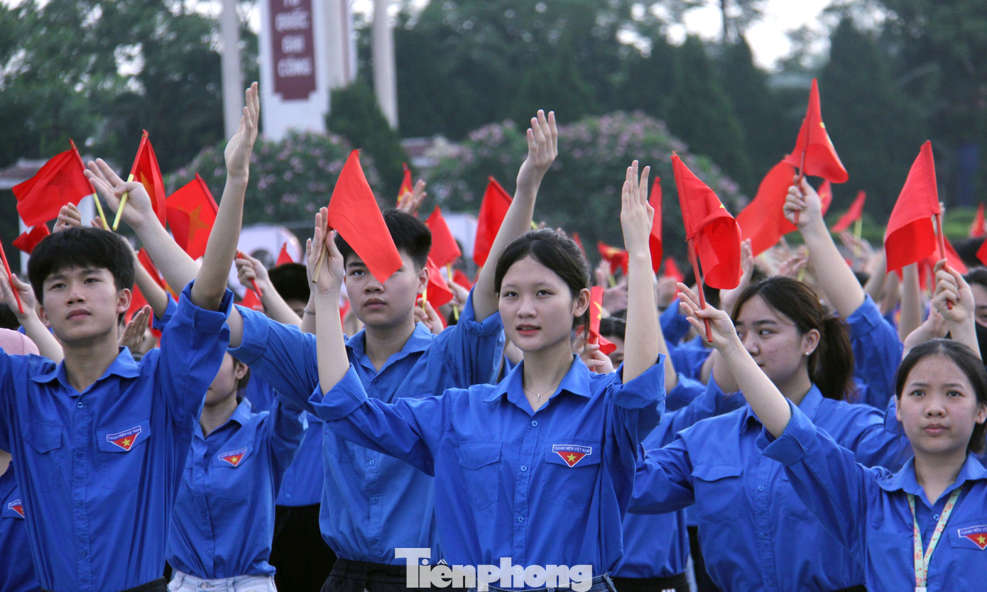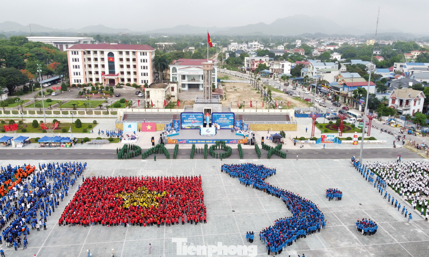 | Đoàn viên thanh niên Thái Nguyên đồng diễn, xếp hình chữ "Việt Nam", "Đại hội..." và cờ Tổ quốc, bản đồ Việt Nam tại ngày hội. |