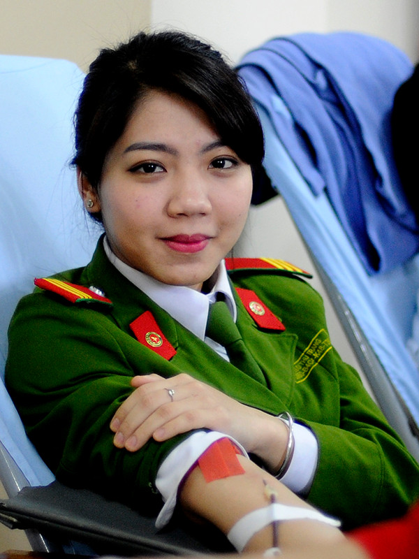 Lưu Thị Trang (C46, Cục cảnh sát Kinh tế) là một trong số rất nhiều nữ tình nguyện viên tham gia hiến máu