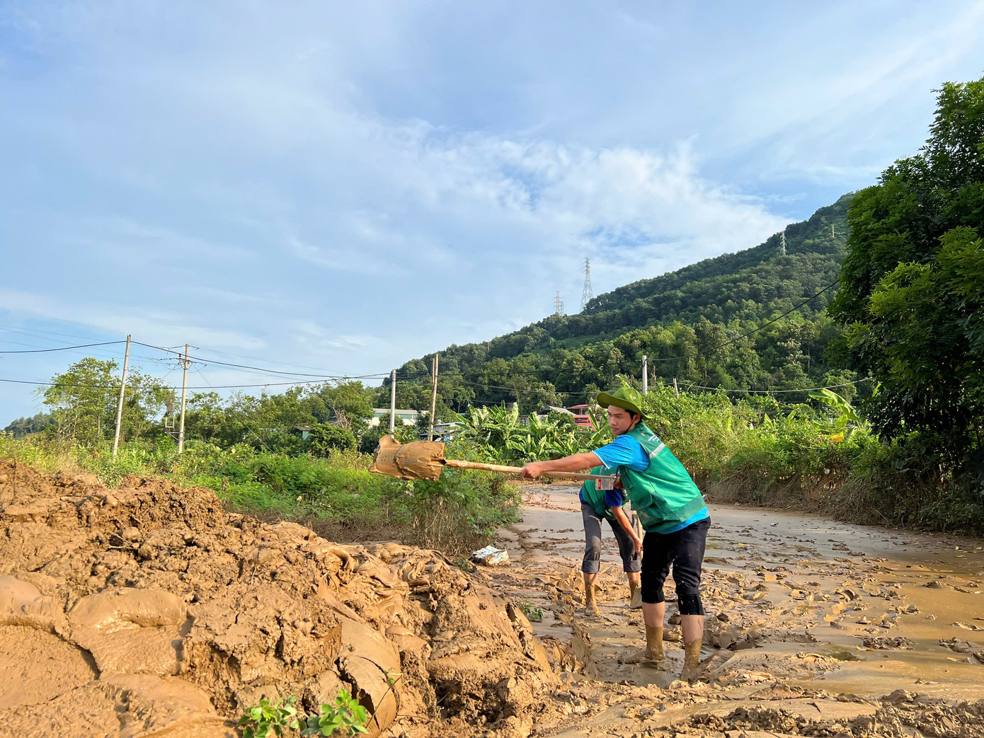 Một số hình ảnh của Đội hình thanh niên tình nguyện TP. HCM tham gia khắc phục hậu quả bão, lũ do cơn bão số 3 gây ra tại tỉnh Lào Cai và tỉnh Tuyên Quang: (Ảnh: TLTĐ)