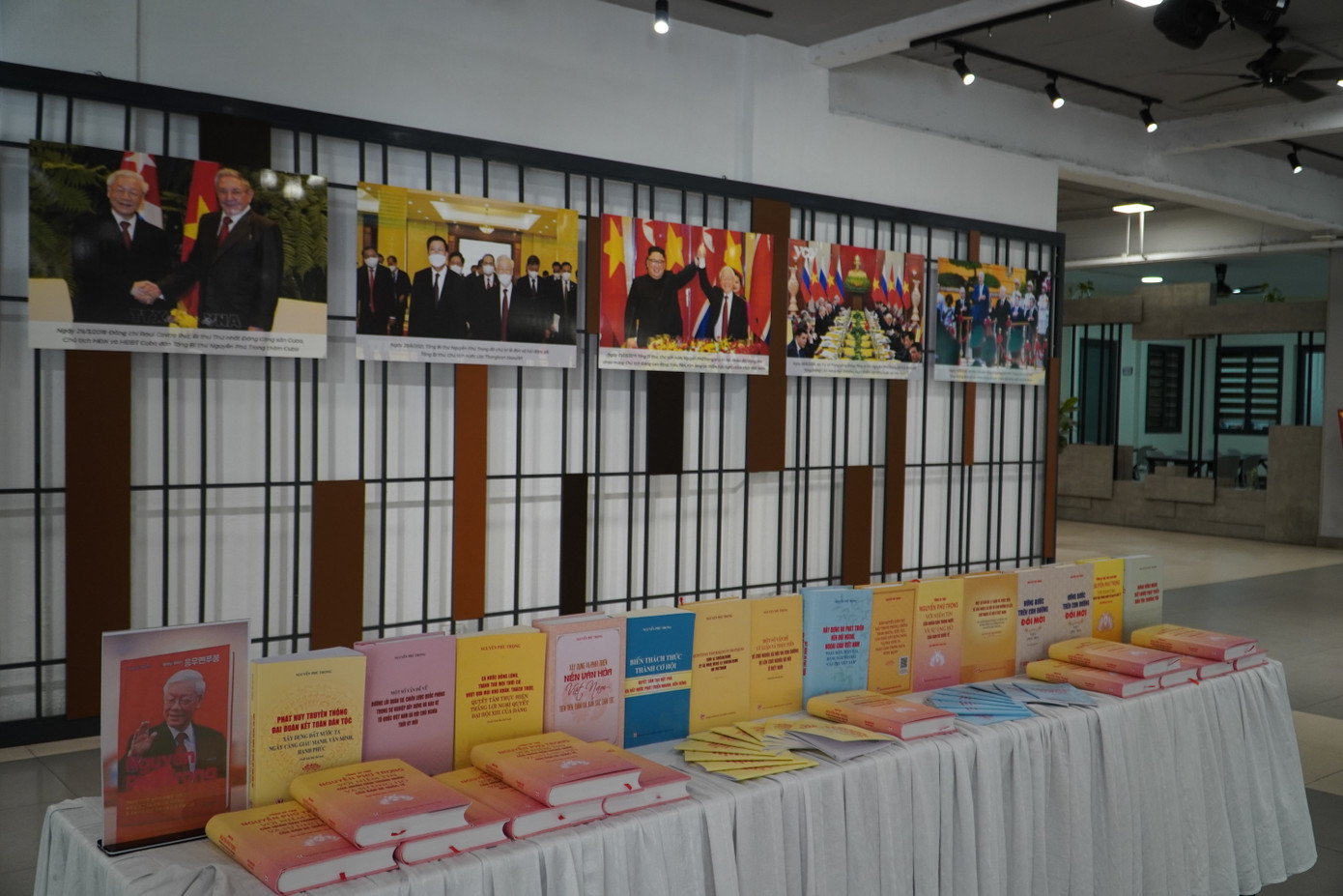 | Không gian "Tổng Bí thư Nguyễn Phú Trọng sáng mãi trong lòng tuổi trẻ TP. HCM" được trưng bày tại Nhà Văn hóa Thanh niên TP. HCM. |
