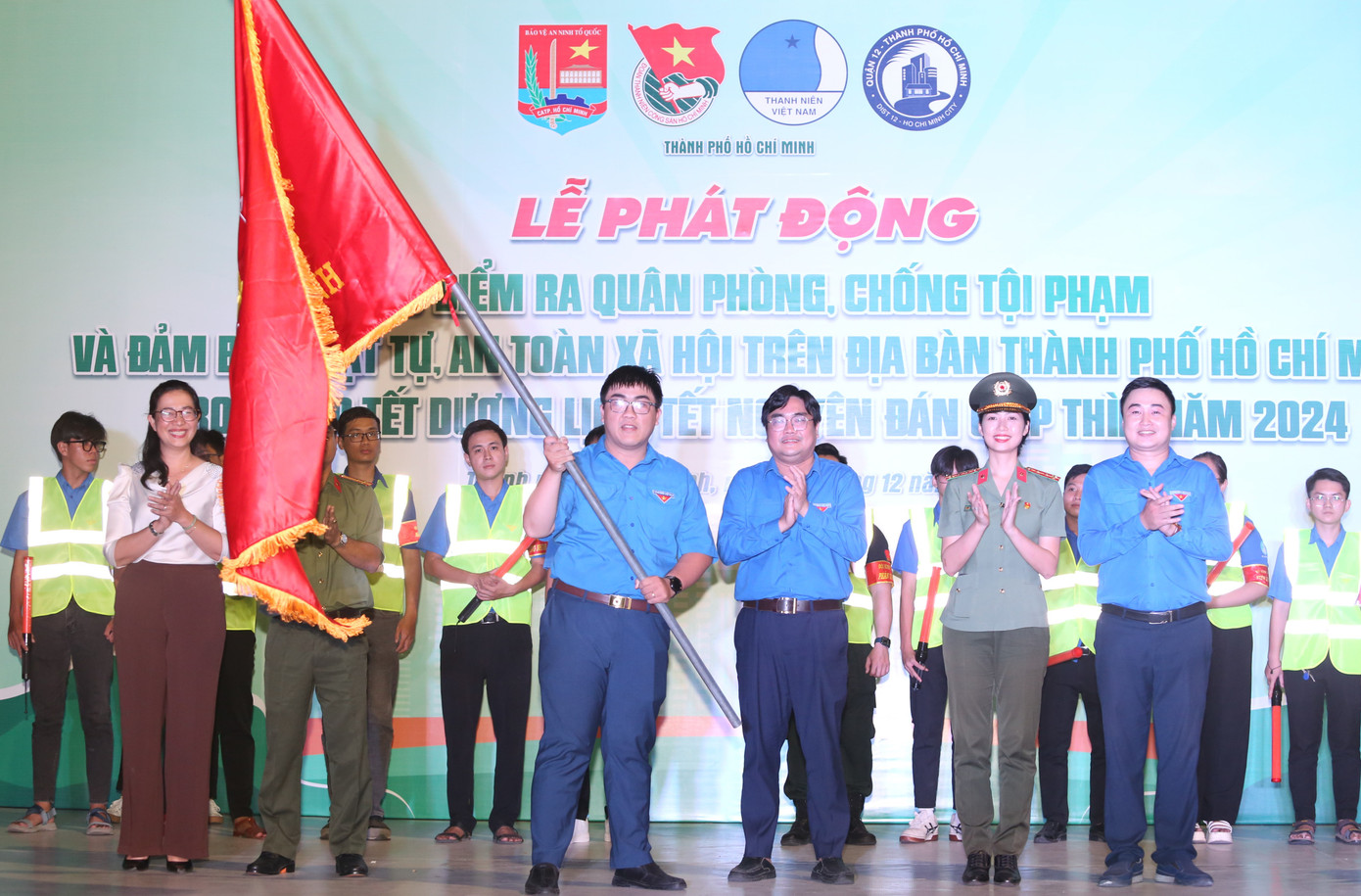 Tối 26/12, tại Khu công viên phần mềm Quang Trung, Thành Đoàn TPHCM phối hợp Công an thành phố, Quận ủy - UBND quận 12 tổ chức phát động đợt cao điểm phòng, chống tội phạm và đảm bảo trật tự, an toàn xã hội trên địa bàn TPHCM dịp Tết Dương lịch, Tết Nguyên đán Giáp Thìn 2024.