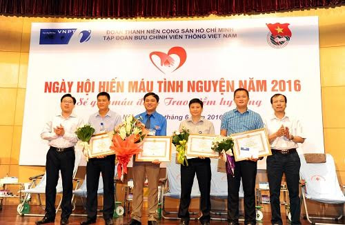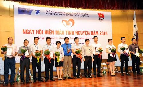 Tại buổi Lễ, BTC trao tặng Bằng khen của Ban Vận động Hiến máu Quốc gia cho 4 tập thể và trao Giải thưởng Giọt hồng cho 10 cá nhân tiêu biểu nhất trong phong trào hiến máu tình nguyện của Tập đoàn BCVT VN giai đoạn 2012-2016.