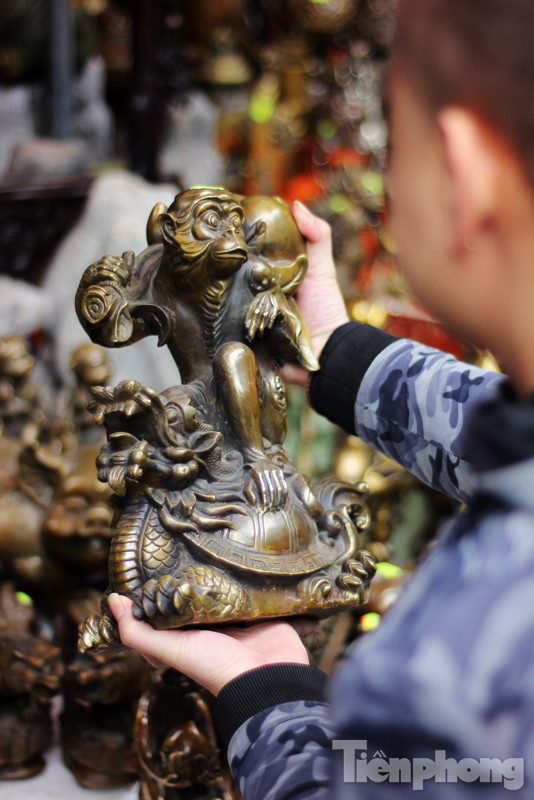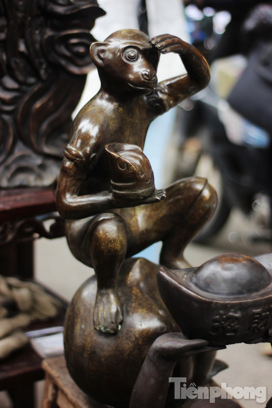 Nếu như năm ngoái, những bức tượng dê đồng được người dân Hà thành săn lùng để chơi Tết thì năm nay, đến lượt tượng khỉ đồng lên ngôi.