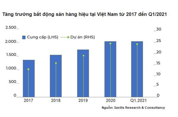 Kết quả nghiên cứu mới nhất của Savills cho thấy Việt Nam nằm trong nhóm 10 thị trường bất động sản hàng hiệu phát triển nhanh nhất thế giới. Nguồn cung bất động sản hàng hiệu tại đây tăng bình quân 11% từ năm 2017. Đến quý I/2021, Việt Nam đã có 24 dự án bất động sản hàng hiệu với hơn 2.200 căn hộ, tập trung chủ yếu tại các địa điểm nghỉ dưỡng ven biển.
