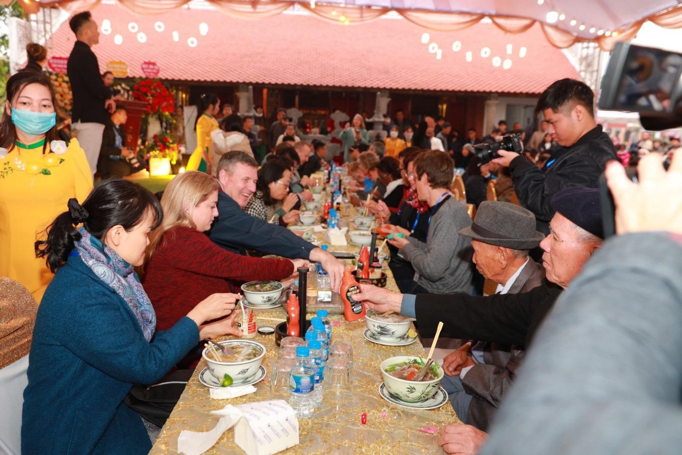 Cũng trong sáng ngày 10/12, gần 20 đại sứ, các nhà ngoại giao đang công tác tại Việt Nam đã có buổi trải nghiệm phở Việt tại Nam Định, nơi được biết đến là “cái nôi” của phở Việt. Bên cạnh đó, “Ngày của Phở” còn thu hút rất đông sự quan tâm của du khách nước ngoài. Anh Chad Richard Kubanoff, một người Mỹ có vợ Việt, nổi tiếng với các video về phở trên kênh TikTok @chadkubanoff hơn nửa triệu người theo dõi cũng có mặt tại làng Vân Cù từ ngày 9/12 chia sẻ: “Tôi có thể đưa một tô phở cho hầu hết mọi người trên hành tinh này và họ sẽ không cảm thấy lo lắng gì mà nếm thử, và ngay cả khi họ không ăn thịt bò, chúng ta có thể phục vụ họ phở gà. Khó ai có thể cưỡng lại một tô "súp" nóng hổi, đậm đà hương vị, mộc mạc mà dễ chịu". Anh cũng tự tin đưa ra nhận định: "Thật khó để tưởng tượng một món ăn nào có thể làm tốt hơn phở trong việc quảng bá ẩm thực Việt Nam ra khắp thế giới”.