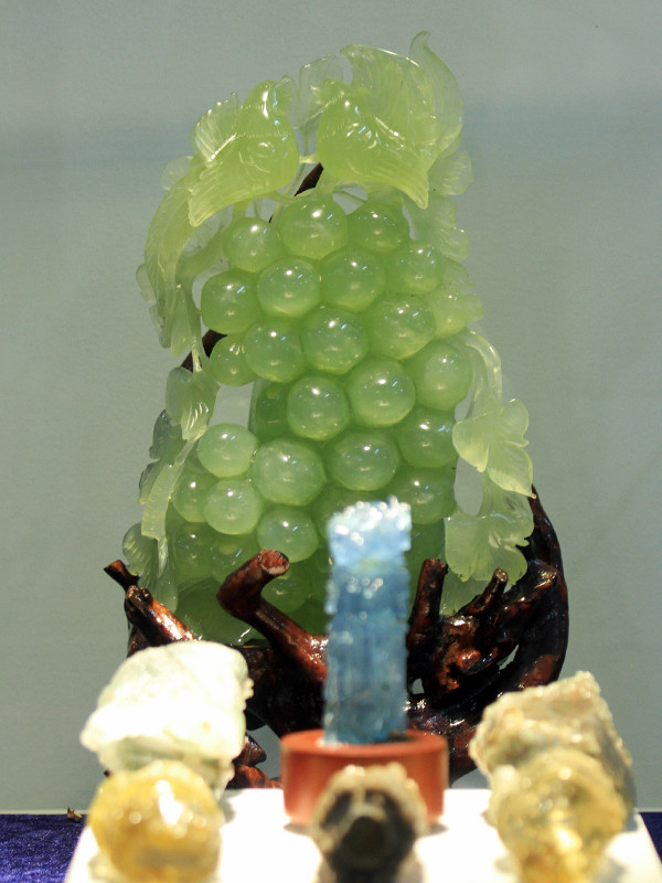 Tác phẩm bầu bí, với việc tạo hình bầu bí quấn lấy nhau, phía trên có một chú mèo đang leo trèo, làm bằng đá aquamarine, đang được ra giá 250.000 USD và là tác phẩm có giá cao thứ nhì tại triển lãm.