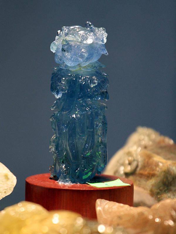Nhiều tác phẩm điêu khắc bằng đá quý tại triển lãm thể hiện sự tài hoa của nghệ nhân.