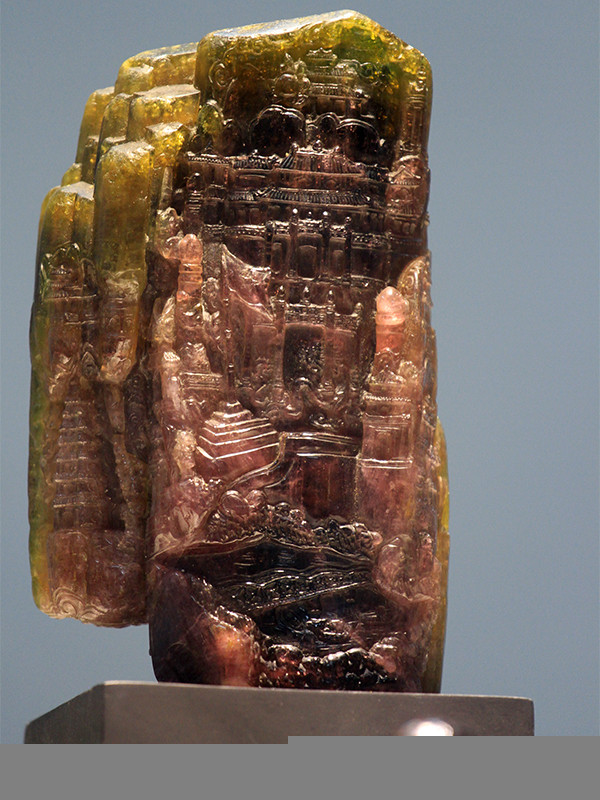 Tác phẩm "Văn hóa Huế" làm từ đá tourmaline, với hơn 10 biểu tượng của cố đô như cầu Trường Tiền, chùa Thiên Mụ, Ngọ Môn... được chạm khắc đan xen, đang ra giá 50.000 USD.