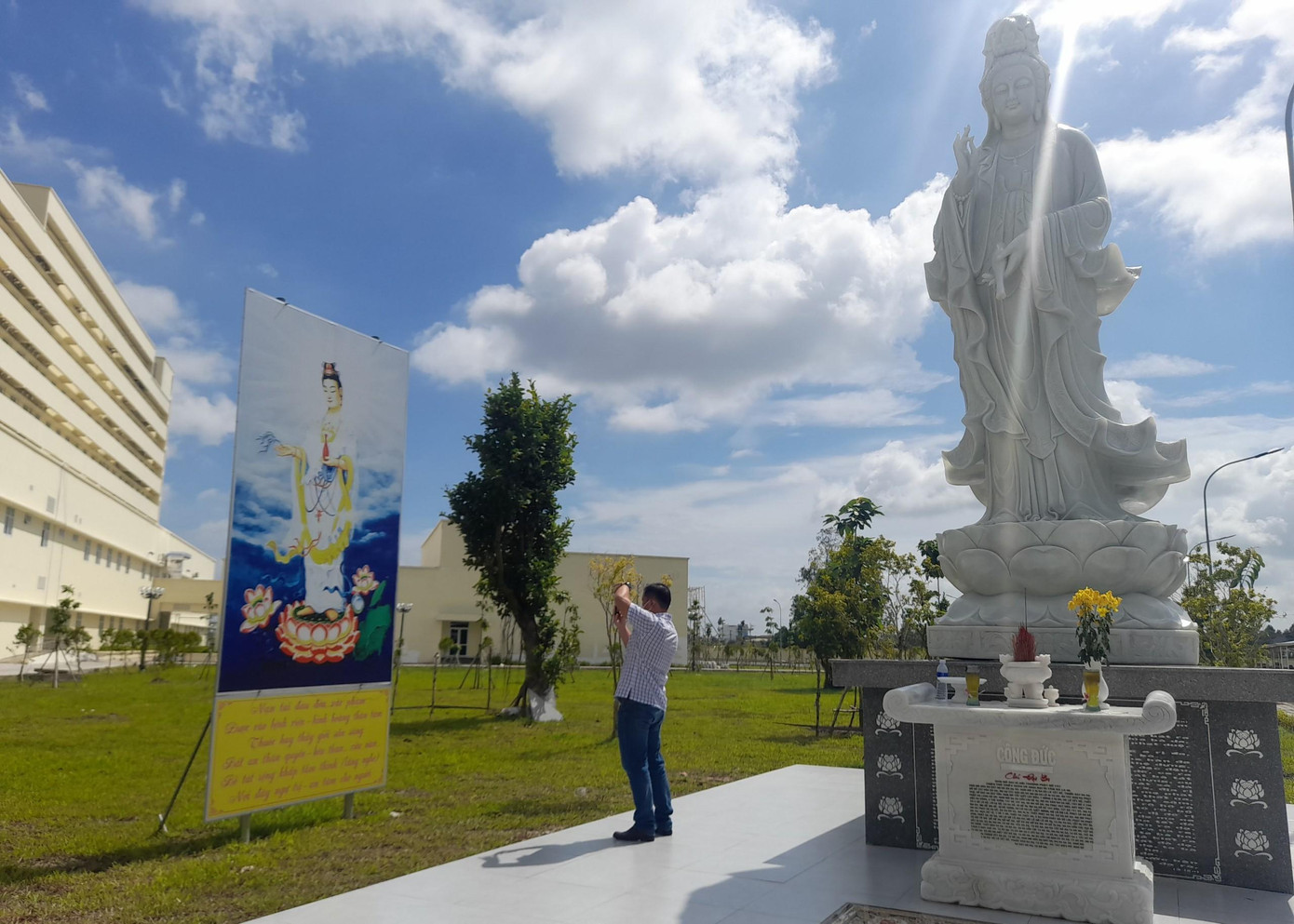 Thời gian gần đây, một số người đến bệnh viện Đa khoa (BVĐK) tỉnh Trà Vinh (phường 7, TP Trà Vinh, tỉnh Trà Vinh) khá bất ngờ khi thấy một tượng Phật được dựng ngay bên trong khuôn viên bệnh viện này.