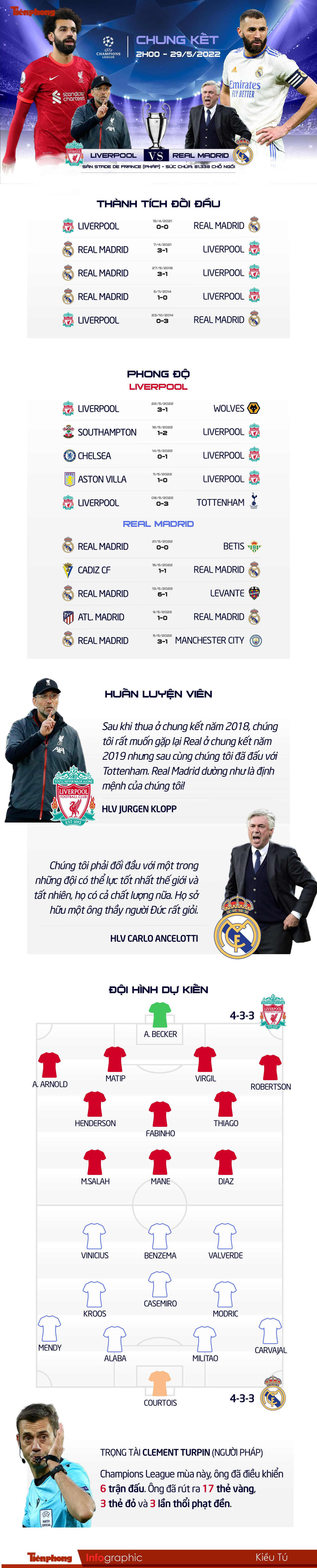 TPO - Liverpool sẽ đối đầu với Real ở trận chung kết Champions League mùa giải 2021/22. Đây chắc chắn là màn đối đầu thu hút sự quan tâm lớn từ người hâm mộ bởi cả 2 CLB đều là những đội bóng theo đuổi triết lý bóng đá tấn công, khoa học và hấp dẫn.