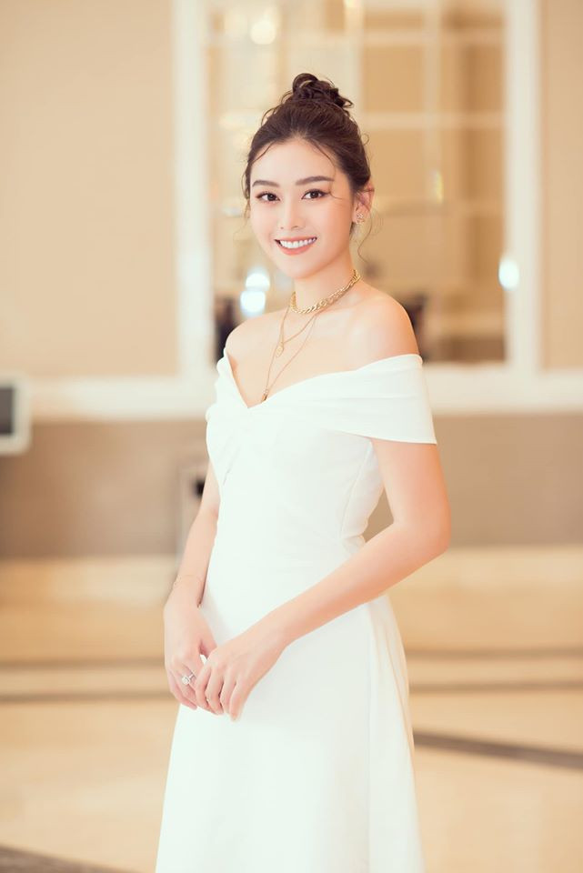 Á hậu Tường San đẹp tựa 'thiên thần' trong bộ váy trắng trễ vai quyến rũ.