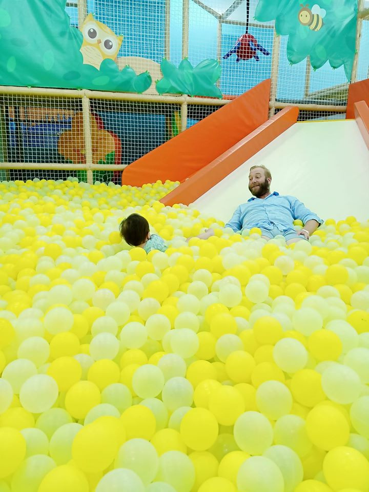 Hoa hậu Ngô Phương Lan khoe ảnh ông xã đang chơi đùa cùng con gái trong khu nhà bóng.
