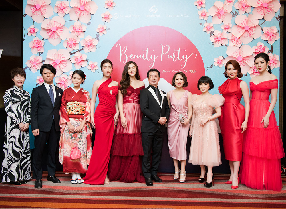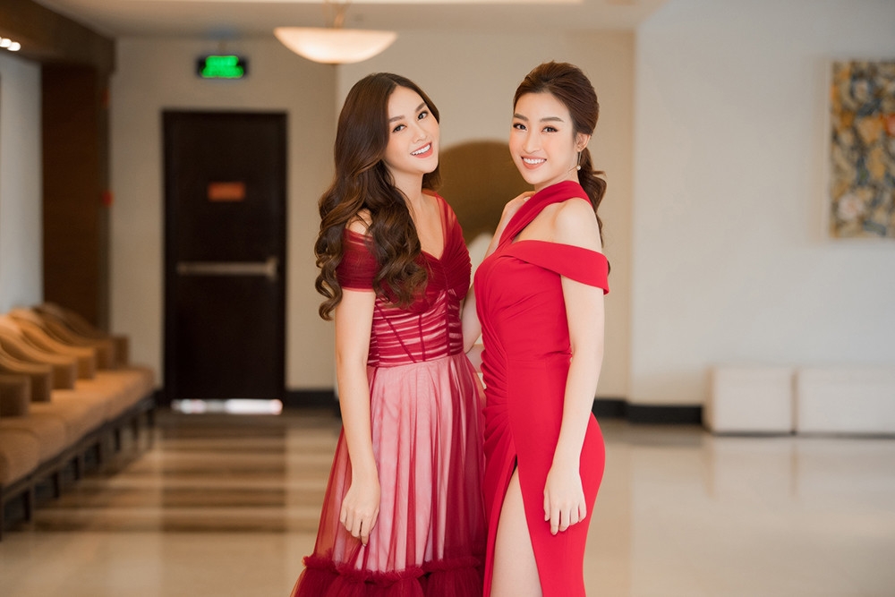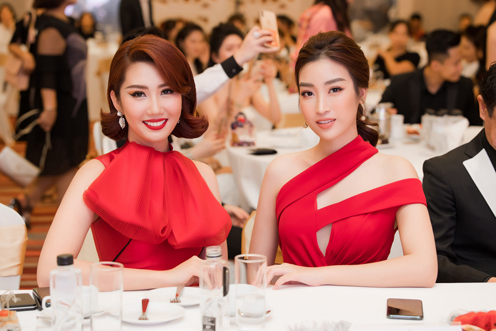 Hoa hậu Đỗ Mỹ Linh và diễn viên Thuý Ngân khoe sắc rực rỡ trên bàn tiệc.