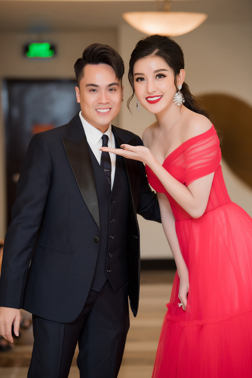 MC Thái Dũng diện vest đen lịch lãm đảm nhận vai trò dẫn dắt chương trình. Vốn thân thiết với Á hậu Huyền My nên cả hai đã vô cùng mừng rỡ khi hội ngộ ở sự kiện và có những cử chỉ thân thiết, nhí nhảnh.