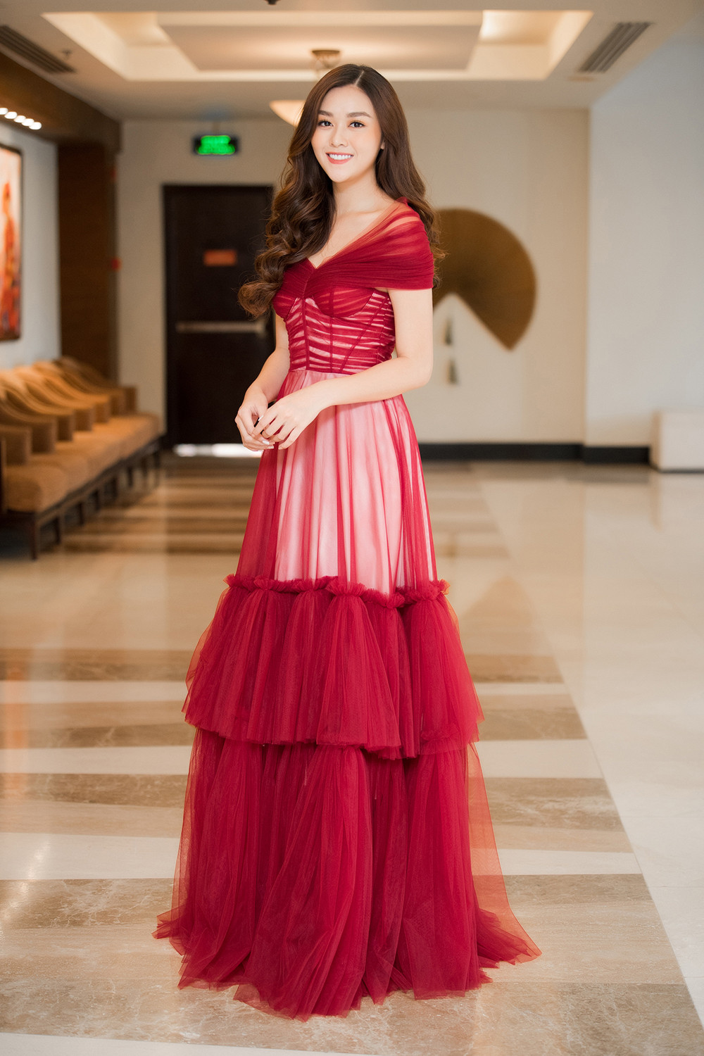 Hoa hậu Đỗ Mỹ Linh diện bộ đầm dạ hội có kiểu dáng độc đáo của NTK Linh San.