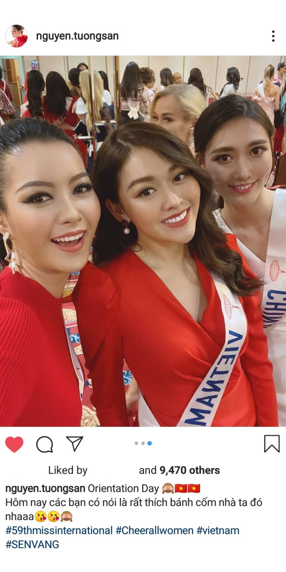 Các thí sinh khác còn tỏ rõ sự thích thú khi cùng đồng thanh nói bằng tiếng Việt “bánh cốm Việt Nam” trong niềm hân hoan và vui vẻ. Thậm chí Tường San còn chia sẻ trên trang cá nhân rằng “hôm nay các bạn có nói rằng rất thích bánh cốm nhà ta đó nha”.