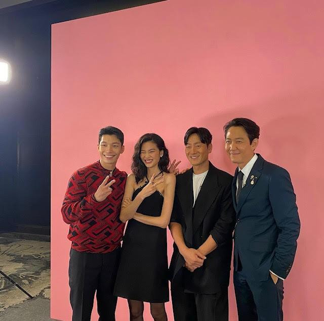 Bên cạnh đó, Lee Jung Jae cũng chia sẻ ảnh chụp selfie cùng diễn viên Wi Han Jun, siêu mẫu – diễn viên có tên tuổi đang lên như 'diều gặp gió' Jung Ho Yeon và Park Hae Soo. Dù đã phát sóng hết 9 tập phim được một khoảng thời gian, nhưng Squid Game vẫn chưa hề có dấu hiệu 'hạ nhiệt'. Dàn diễn viên tham gia bộ phim cũng như đạo diễn vẫn liên tục nhận được rất nhiều lời mời từ các chương trình trong nước và quốc tế.