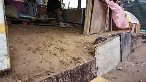Bà khoe sau nửa tuần tự mình đào và xúc đất, nền của túp lều đã được nâng cao hơn. Trước đây, cứ mỗi lần mưa lớn, nước sông dâng lên tận cửa, nước mưa từ phía trên bờ "rủ" nhau tràn vào lều, mọi đồ đạc trong nhà đều ướt hết. Bây giờ nền đã được đắp cao, không sợ bị nước tràn vào nữa.
