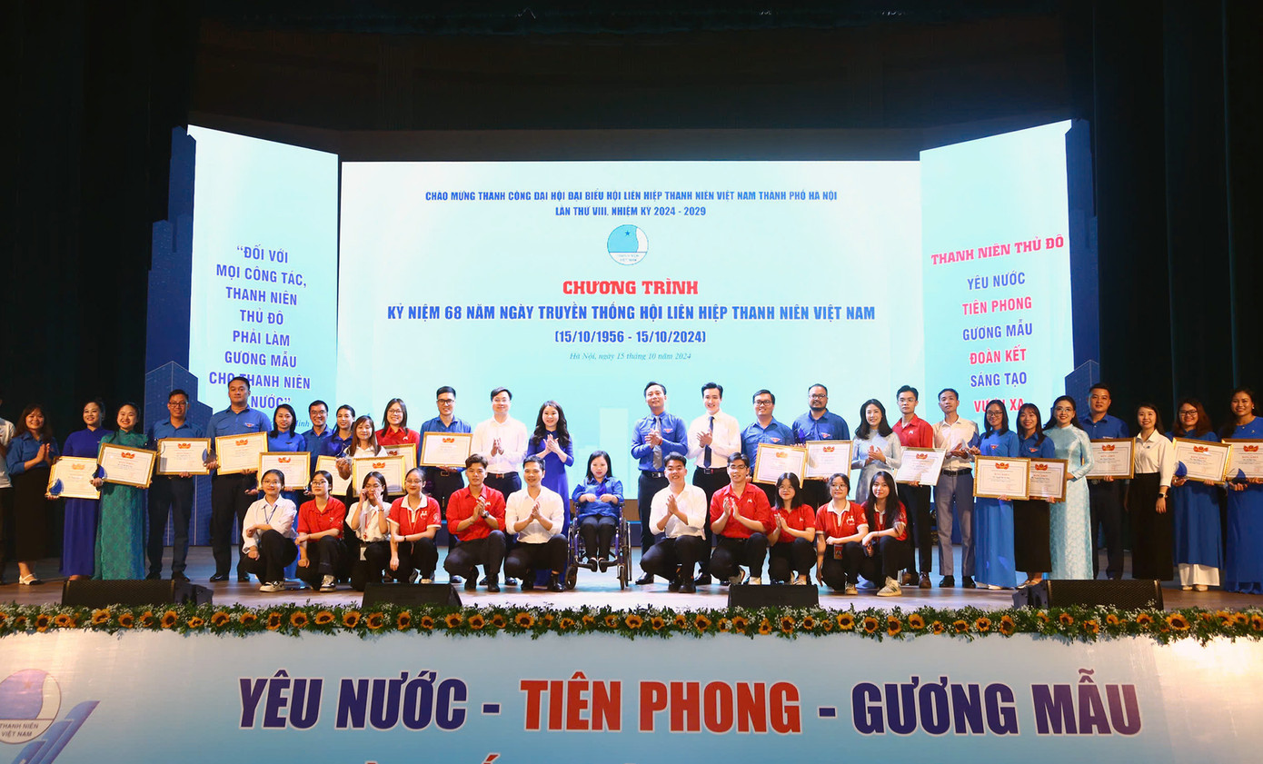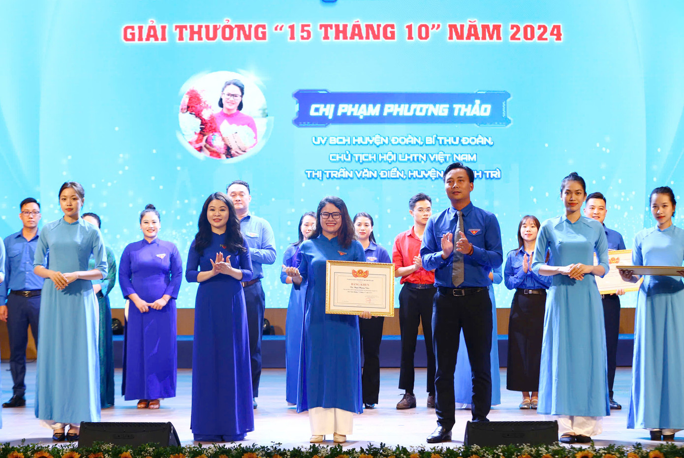 Tại chương trình, Hội LHTN Việt Nam Thành phố Hà Nội trao giải thưởng “15 tháng 10” cho 16 gương cán bộ Hội có nhiều thành tích tiêu biểu trong công tác Hội và phong trào thanh niên năm 2024.