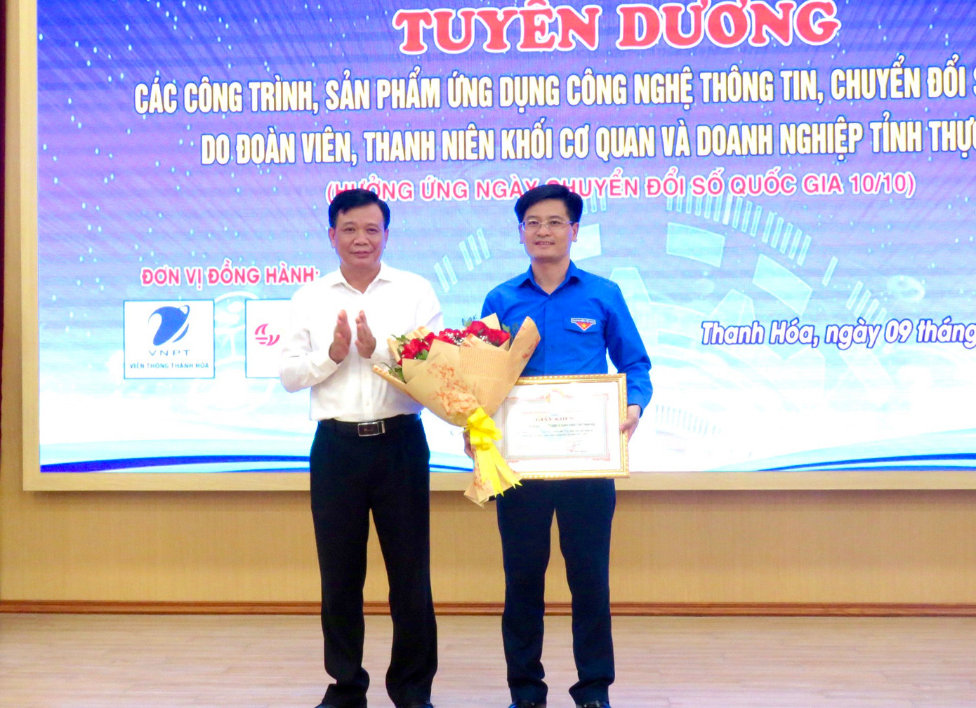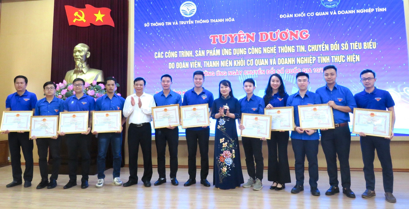 Theo đó, lãnh đạo Sở Thông tin và Truyền thông Thanh Hóa đã trao tặng Giấy khen cho Đoàn TNCS Hồ Chí Minh Khối Cơ quan và Doanh nghiệp tỉnh vì đã có thành tích xuất sắc trong phong trào thi đua “Ứng dụng CNTT, chuyển đổi số tại các cơ quan, doanh nghiệp tỉnh, giai đoạn 2021-2023.
