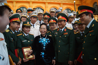 Phó Chủ tịch nước mong muốn, tuổi trẻ Quân đội, Công an tiếp tục rèn luyện bản lĩnh, ý chí, sáng tạo để không chỉ là lực lượng xung kích trên lĩnh vực mình công tác, mà còn là người tham mưu những vấn đề cần giải quyết để giữ sự bình yên cho Tổ quốc và nhân dân.