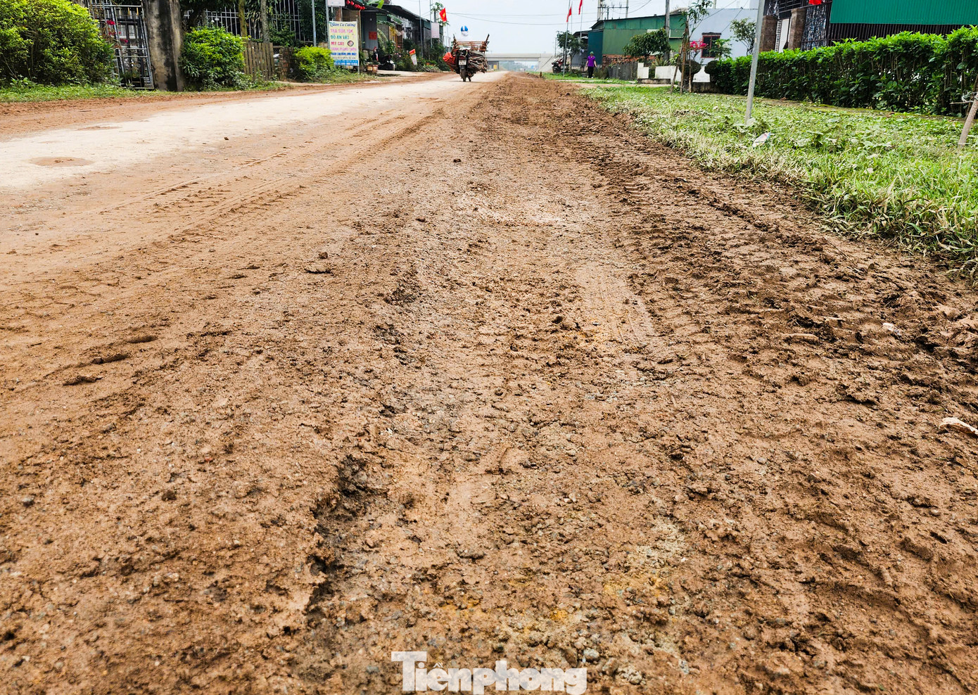 Tuyến đường sử dụng làm đường công vụ nên xe tải chở đất chạy qua lại liên tục khiến mặt đường lầy lội khi mưa, bụi mù mịt khi nắng.