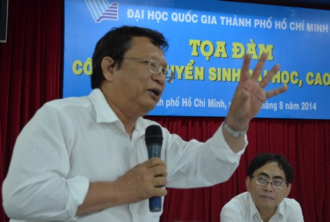 Trong khi đó, PGS.TS Nguyễn Đức Nghĩa, PGĐ ĐHQG TP.HCM cho rằng quan điểmtriển một kì thi quốc gia chung và dùng kì thi này đánh giá kết quả tốt nghiệpphổ thông (việc này do bộ và các ở lo) và cho các trường ĐH dựa trên cơ sở đó đểxét tuyển đang chuyển từ phương thức ba chung trở về hai chung (tổ chức thichung và đề thi chung). Đây là tiền đề thuận lợi cho các trường trong vấn đề tựchủ....