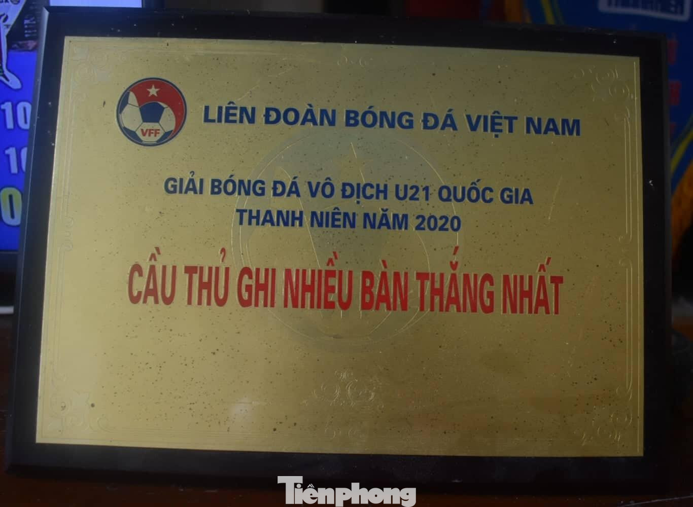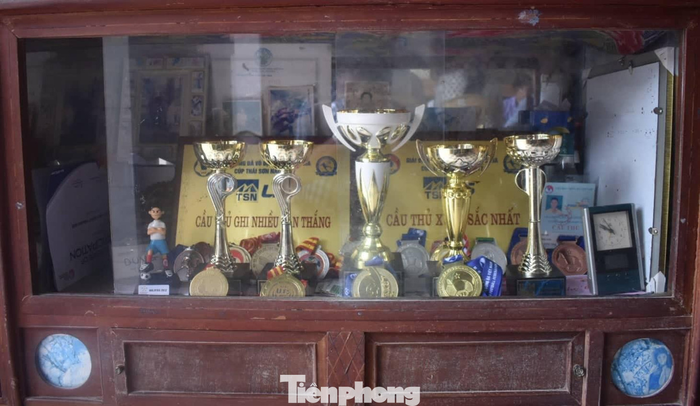 | Thành tích trong sự nghiệp bóng đá của Nhâm Mạnh Dũng được lưu giữ tại quê - Ảnh: Hoàng Long |