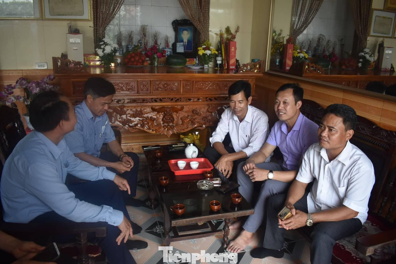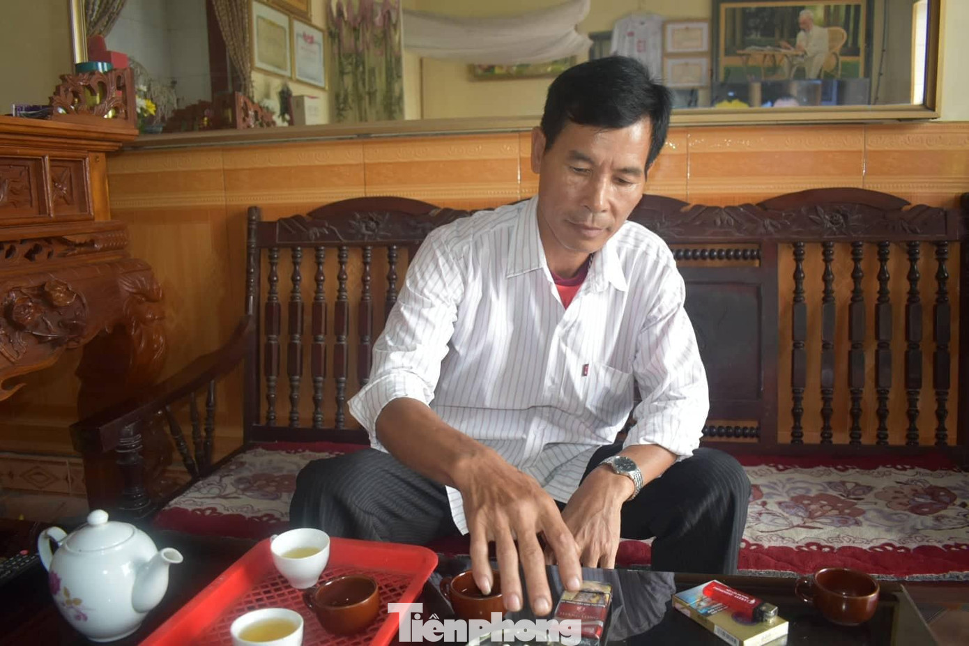 | Gia đình Nhâm Mạnh Dũng ở Đông Hưng, Thái Bình luôn có khách đến chúc mừng. Ảnh: Hoàng Long |