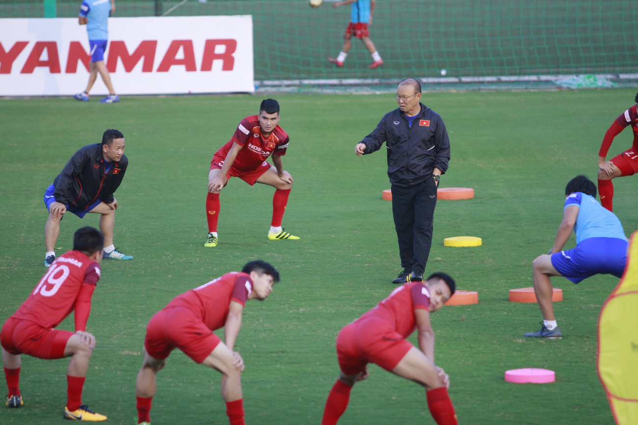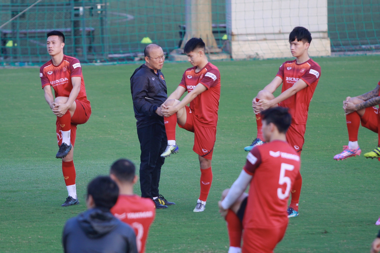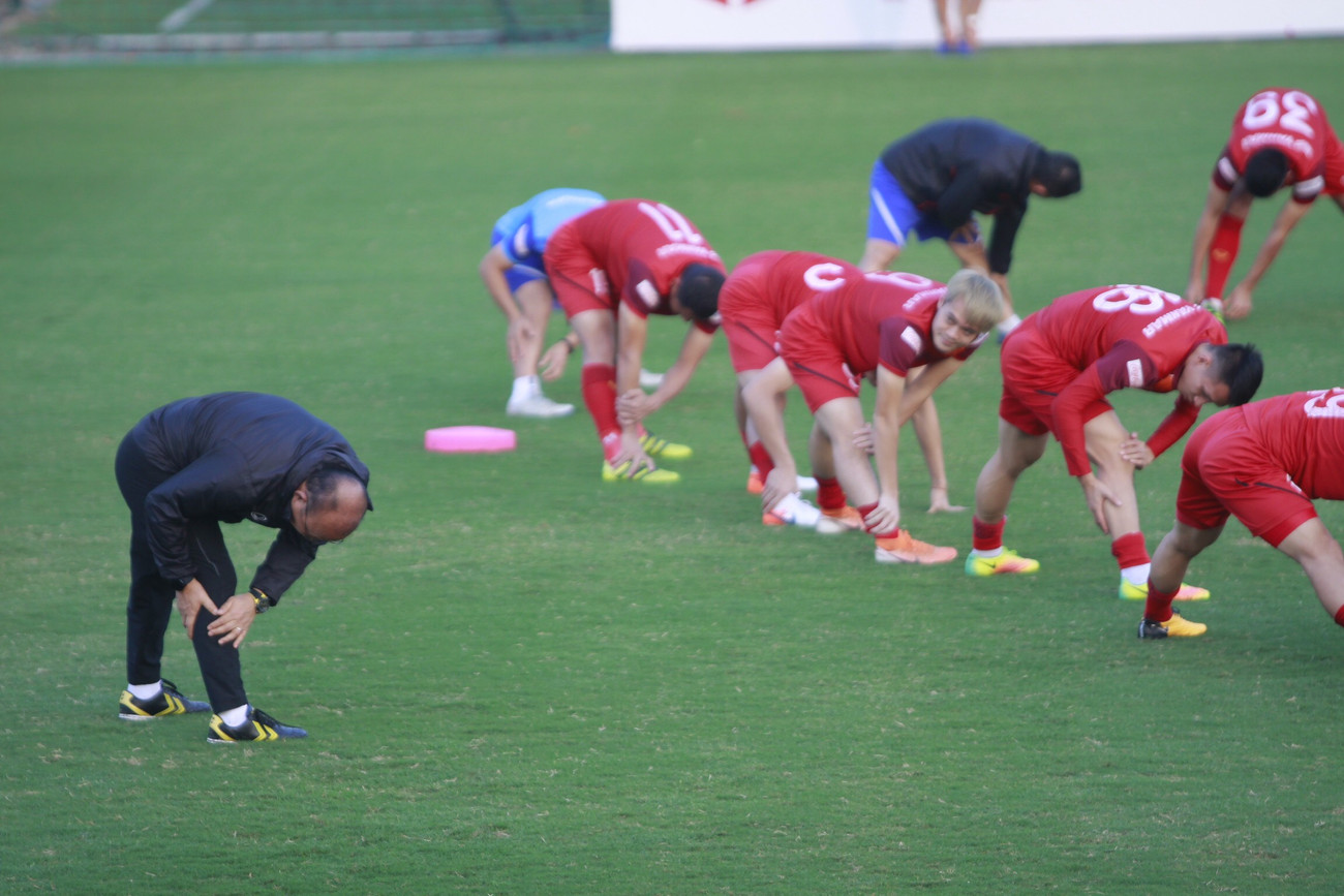 Trong các bài khởi động đầu tiên, HLV Park Hang-seo luôn tập cùng các cầu thủ của mình.