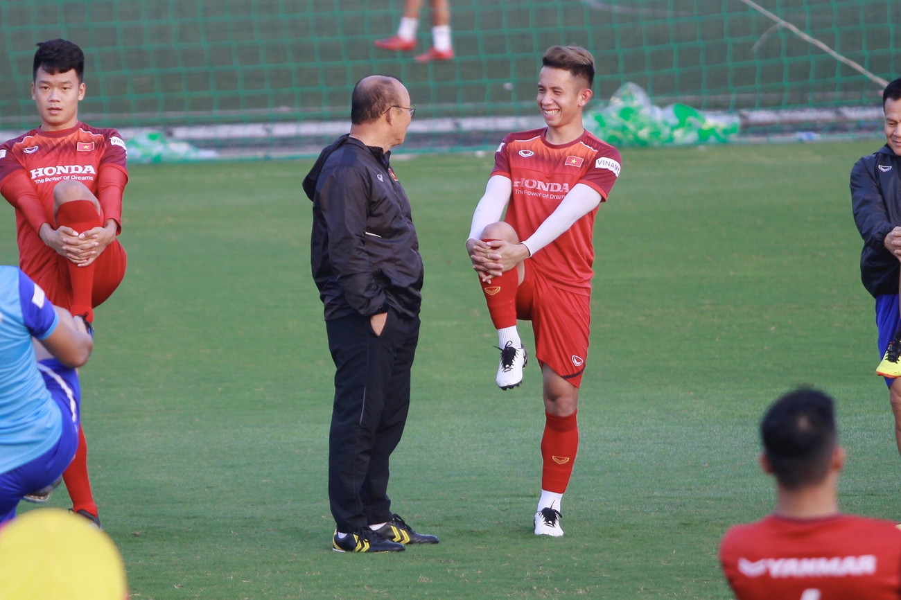Ngoài ra, thầy Park cũng trao đổi riêng với từng học trò, một hành động cho thấy thầy rất tình cảm, giúp tiếp cận tốt với các cầu thủ.