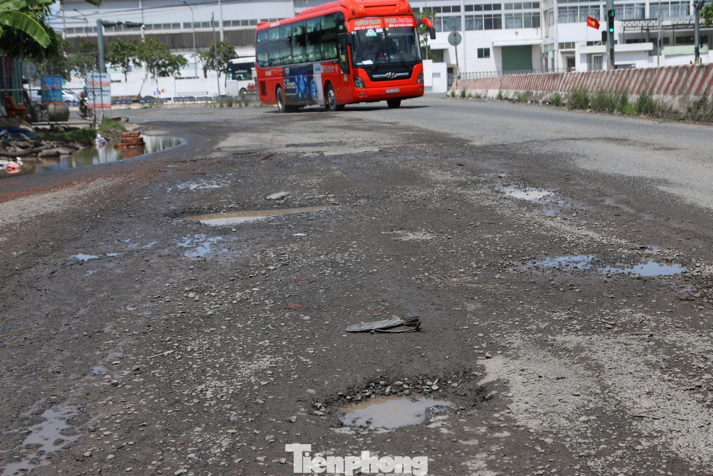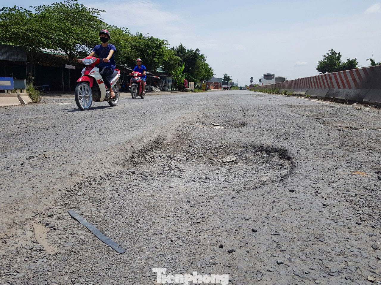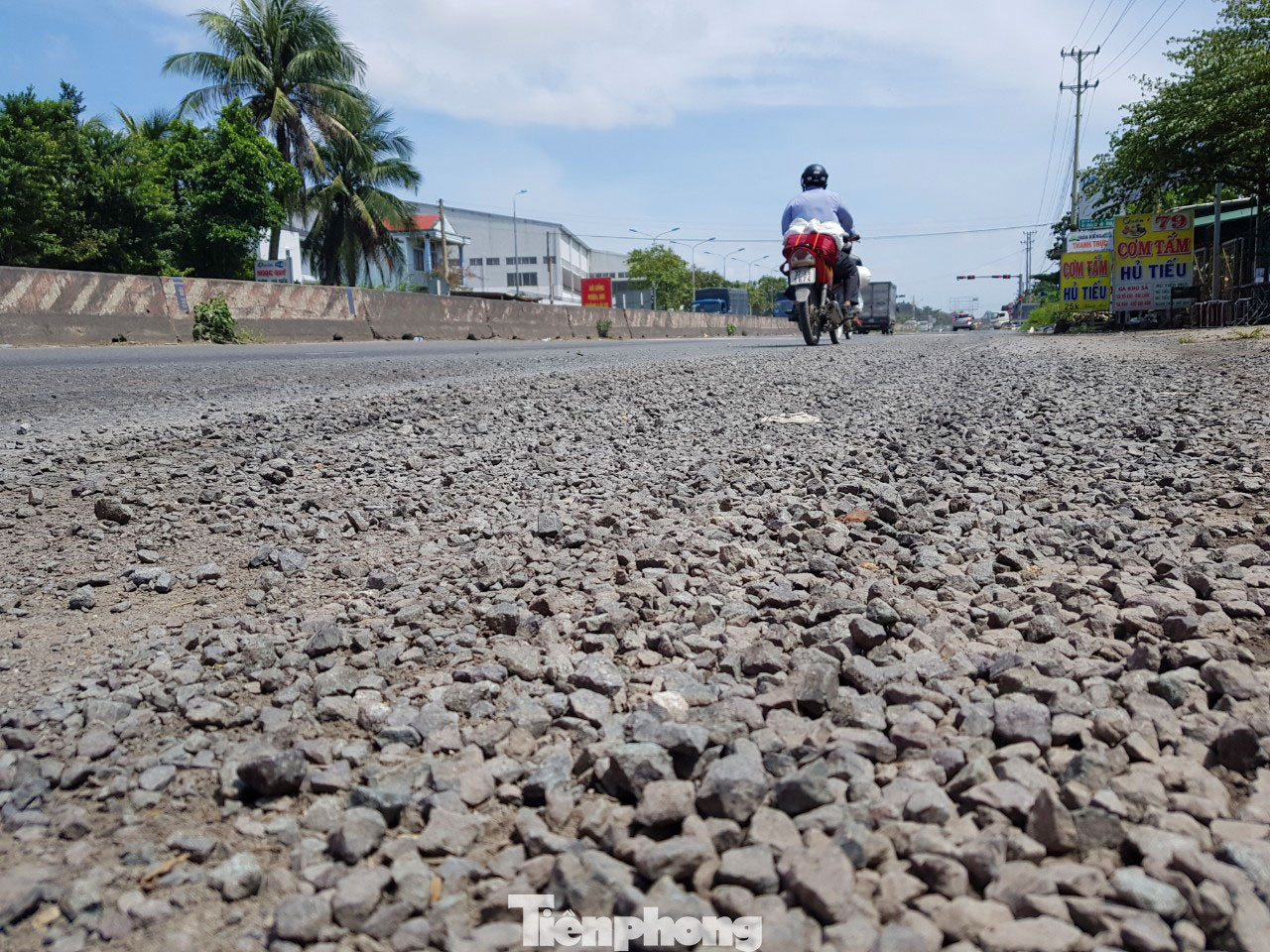 Mặt đường nham nhở, sỏi vương vãi khắp nơi.