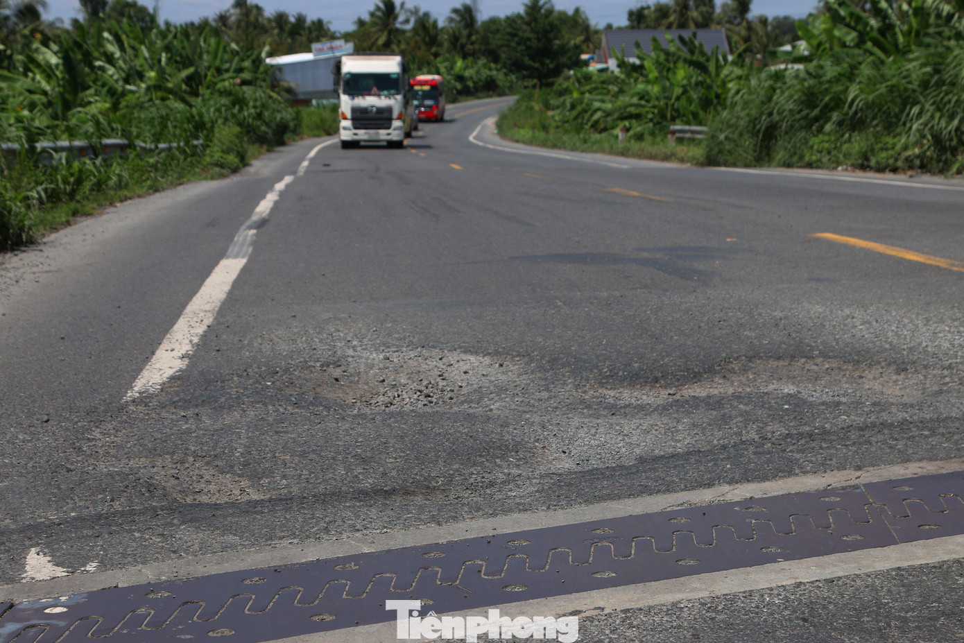 Tuyến tránh Cai Lậy nhiều đoạn bị xuống cấp nghiêm trọng, gây mất an toàn cho người tham gia giao thông.