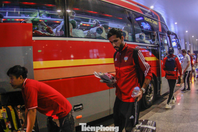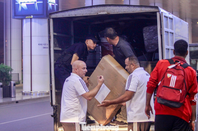Sau khi ra khỏi sân bay, các cầu thủ UAE nhanh chóng xếp hành lý và lên xe về khách sạn.