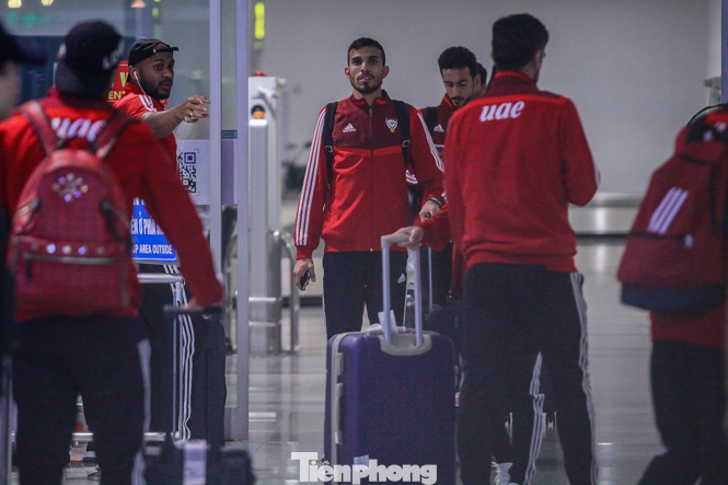 Khoảng 23h ngày 12/11, đội tuyển UAE có mặt tại sân bay Nội Bài sau khi di chuyển bằng chuyên cơ từ Bangkok (Thái Lan).