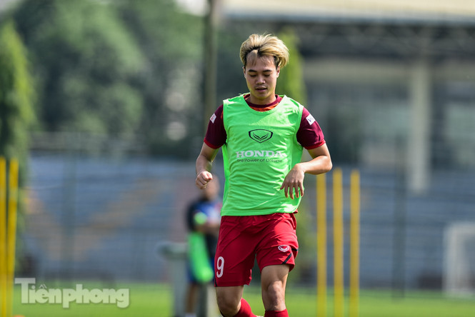 Đình Trọng đã có thể tập cùng các đồng đội trong buổi tập chiều nay của tuyển U22 Việt Nam sau một thời gian dài tập luyện riêng với bác sĩ Choi để hồi phục chấn thương.
