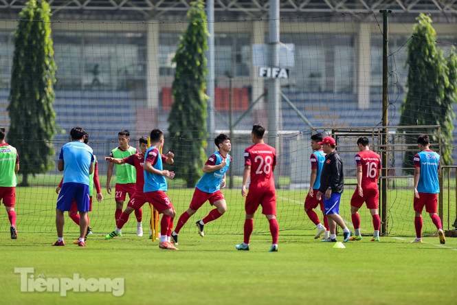 TPO - Tuyển Việt Nam bất ngờ đổi lịch tập luyện. Thay vì "luyện công" vào buổi chiều, HLV Park Hang Seo và các cầu thủ kéo nhau ra sân tập sáng nay (8/11).
