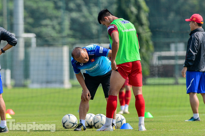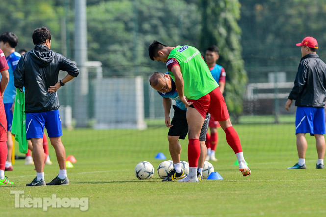 Sau một buổi vắng bóng, thầy Park trực tiếp chỉ đạo các học trò trong buổi tập này.