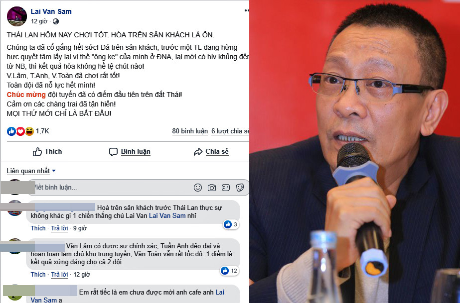 Văn Lâm, Tuấn Anh, Văn Toàn đã chơi rất tốt, toàn đội đã nỗ lực hết mình. Chúc mừng đội tuyển đã có điểm đầu tiên trên đất Thái! Cảm ơn các chàng trai đã tận hiến! Mọi thứ chỉ mới bắt đầu”.