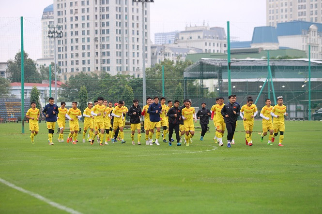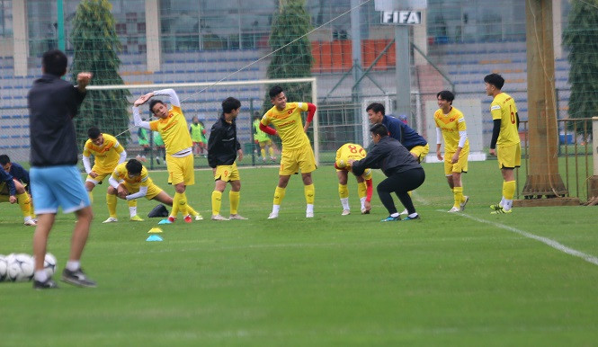 Hôm nay (15/12), nhiệt độ ở Hà Nội giảm sâu. Tuy nhiên, điều đó chẳng ảnh hưởng nhiều tới kế hoạch tập tuyện của đội tuyển Việt Nam.